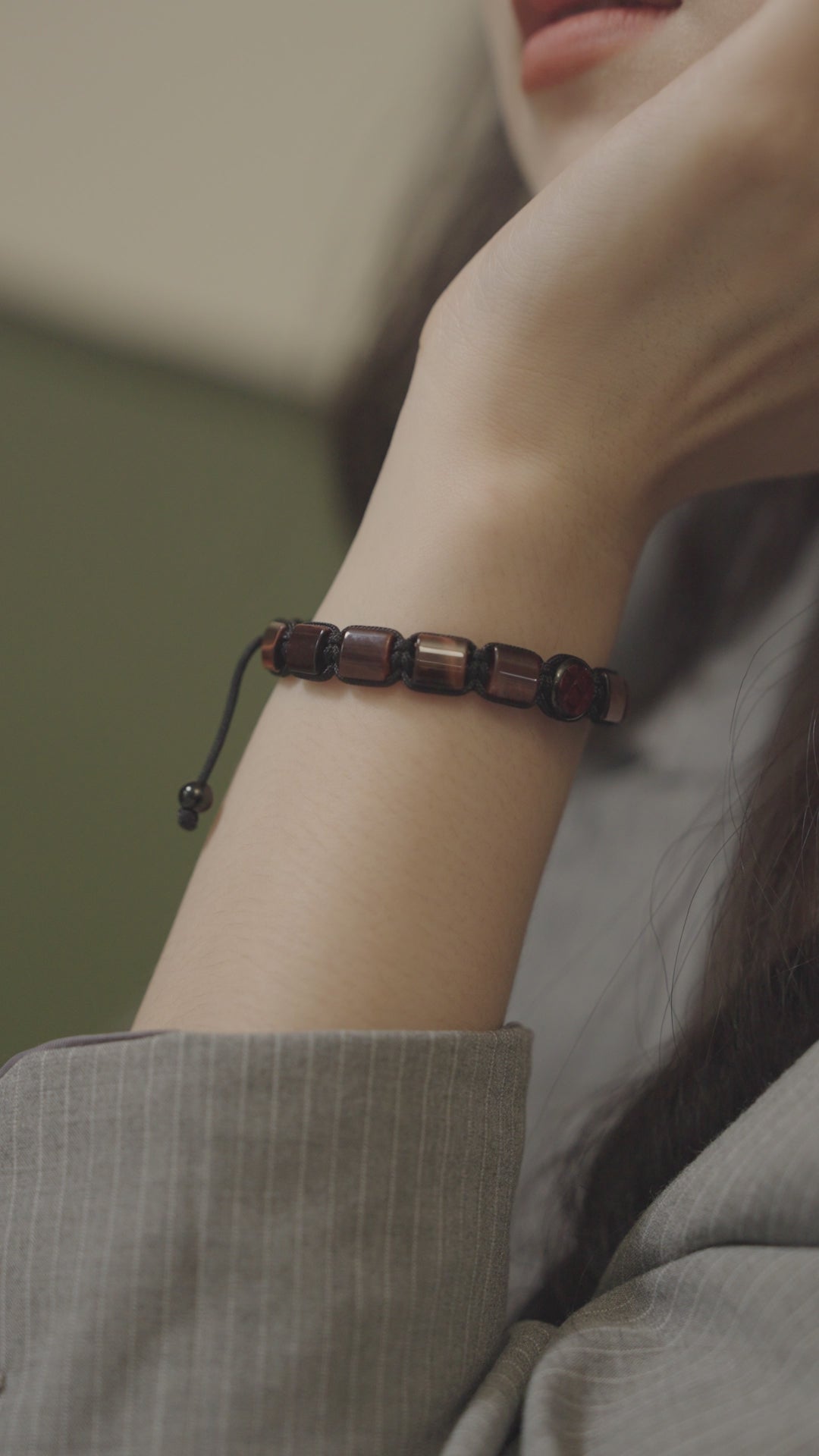 這款使用的紅虎眼是偏紅棕色的,紅棕色與黑色編織出的紅熾手鍊,簡單地凸顯出紅虎眼的『熱情』『霸氣』『魅力』,展現霸氣總裁般的內斂型魅力。