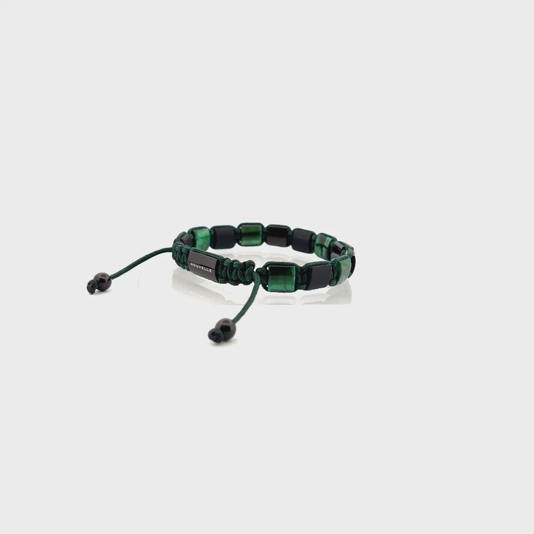 以優質的方形綠虎眼石、黑瑪瑙編織而成,每顆石頭都經過精細的切割和打磨,展現出其獨特的光澤和色彩,黑綠配的迷人,您將感受到寶石所帶來的平衡和穩定能量,同時展現出您的個性和品味。