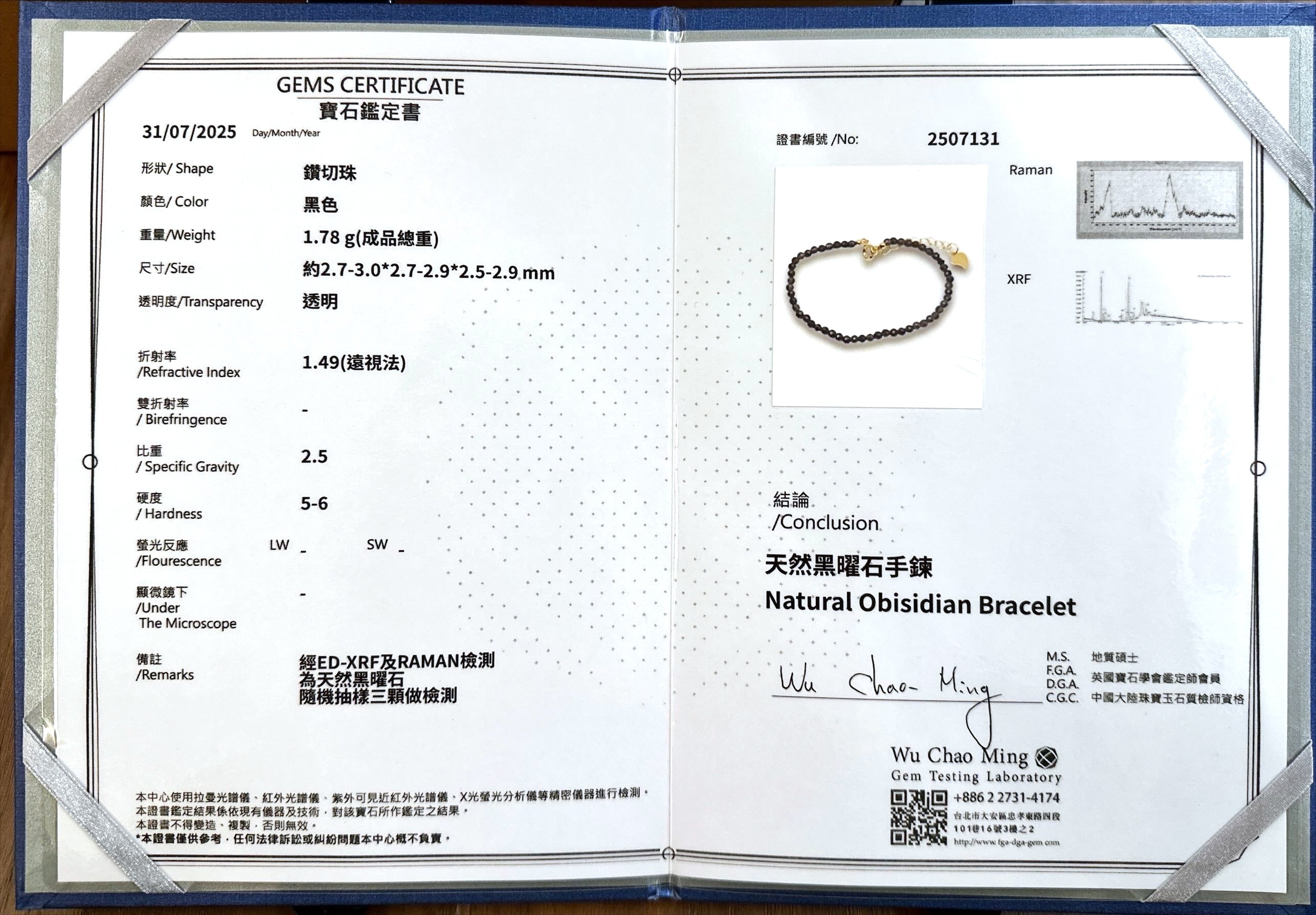 「Obsidian」指的是黑曜石,它以其深沉的黑色和光澤而著名,將注意力集中在手鍊所使用的黑曜石上,強調了其神秘和獨特的外觀。