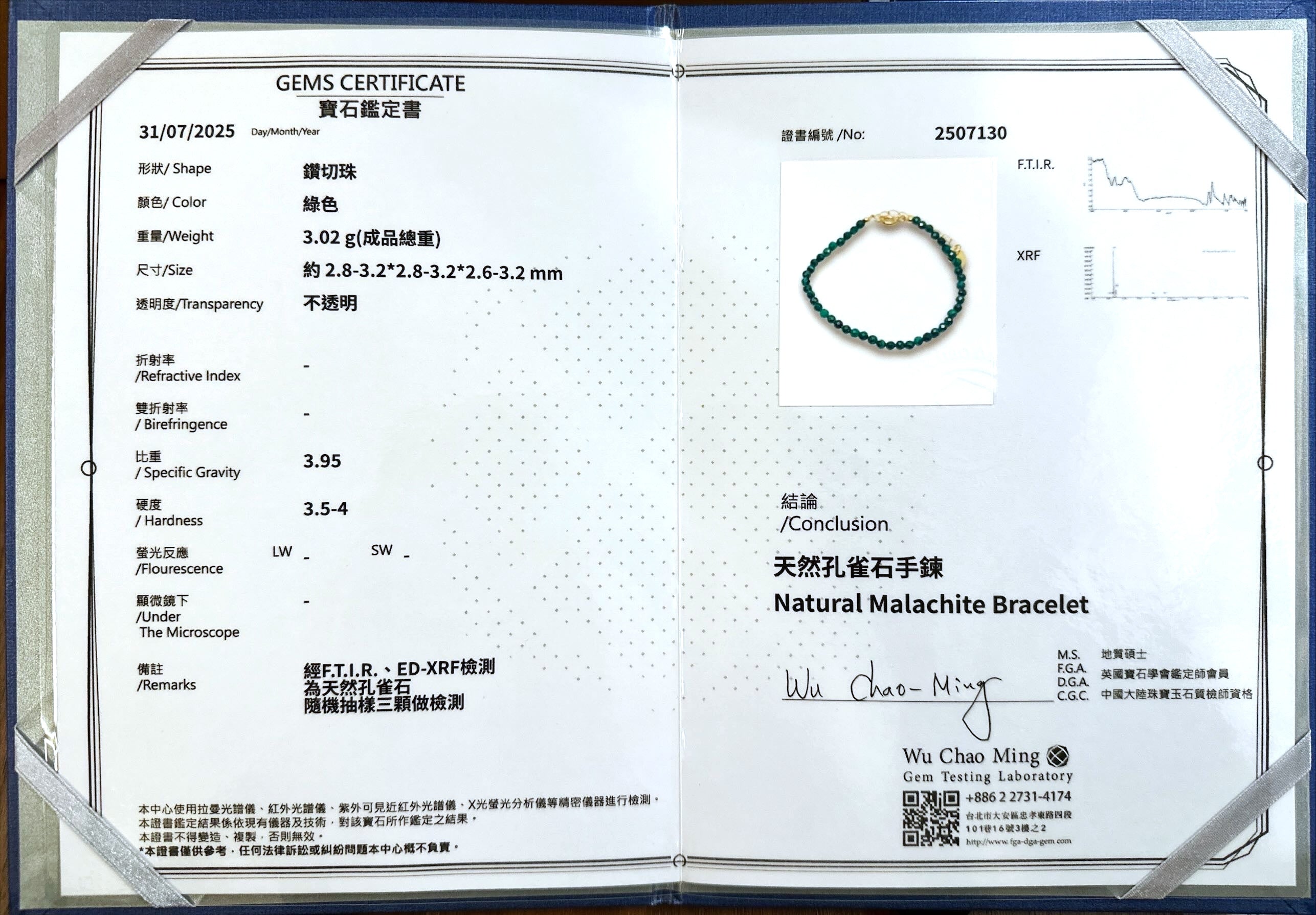 孔雀石的能量平衡我們能量,並不因配戴左手或右手而有差別,所以可以依喜好去佩戴左手還是右手。也可當腳鍊使用。